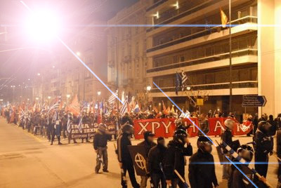 Έτσι κάνουμε πορεία 10.000 και πλέον εθνικιστές στους κεντρικότερους δρόμους της Αθήνας, ακόμα και μπροστά από τα βασιλικά ανάκτορα (τα λένε βουλή τα τελευταία χρόνια, άλλα το νόημα ύπαρξης τους είναι το ίδιο, απλά τώρα κανονίζουν τις μπίζνες τους 3-4 και όχι μια οικογένεια γαλαζοαίματων) και κανένα μέσο δεν δείχνει το ότι το κέντρο καθάρισε για μερικές ώρες από την βρωμιά και τον κίνδυνο των ασιατών και μη εποίκων, οι αστυνομικοί δεν κάνουν τις μαγκιές που έκαναν πριν μερικές ημέρες αντιλαμβανόμενοι ότι δεν τους παίρνει, ούτε τους πολίτες που μας βλέπουν και μπαίνουν στην πορεία μας και ενώνουν την φωνή τους στα συνθήματα μας. Το μόνο που δείχνουν, είναι την προσυγκέντρωση μας σε φωτογραφία, 3 ώρες πριν την συγκέντρωση και ένας τίτλος περί επεισοδίων.