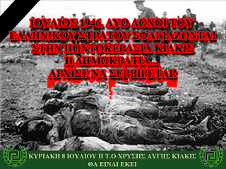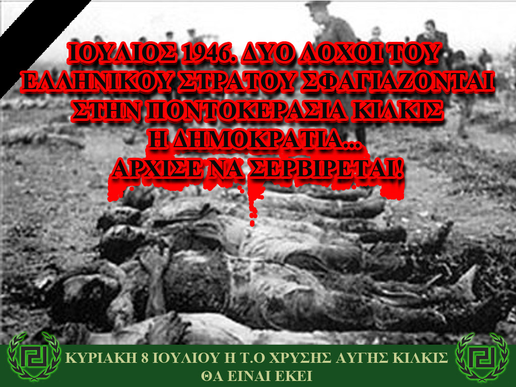 Την νύχτα της 5ης Ιουλίου 1946 και ενώ οι μάχες ,μεταξύ Στρατού και συμμοριτών του ΕΑΜ ΕΛΑΣ, μαίνονταν σε όλη την Ελλάδα, δυο λόχοι Ελλήνων στρατιωτών είχαν στρατοπεδεύσει στο χωριό Ποντοκερασιά Κιλκίς. Ο καταυλισμός περικυκλώθηκε από συμμορίτες την ώρα που οι στρατιώτες κοιμόταν. Τρεις από τους τέσσερις σκοπούς πρόδωσαν τον Ελληνικό στρατό και άφησαν συμμορίτες να μπουν στον καταυλισμό. Μαζί με τους σκοπούς άλλοι 40 στρατιώτες των δυο λόχων είχαν ήδη ενταχθεί στο ΕΑΜ ΕΛΑΣ αλλά δεν το είχαν φανερώσει. Όλοι οι υπόλοιποι στρατιώτες,παιδιά Ελλήνων που πήγαν να υπηρετήσουν την πατρίδα τους, από όλα τα μέρη της Ελλάδας, δέθηκαν πισθάγκωνα και με μαχαίρια και τσεκούρια εκτελέστηκαν μέχρι τελευταίου. Έναν 22χρονο στρατιώτη που προσπάθησε να αντισταθεί τον έκαψαν ζωντανό. Στο χωριό είχε και τον σταθμό χωροφυλακής της περιοχής ο οποίος κάηκε και γκρεμίστηκε συθέμελα ενώ η ομάδα χωροφυλακής που ήταν εκεί σφαγιάστηκε. Ένας στρατιώτης από το Ν. Αγιονέρι Κιλκίς ο Τσινασλανίδης Ιορδάνης του Πέτρου που μερικού μήνες πριν είχε δει τον αδερφό του σε ομαδικό τάφο σε άλλη περιοχή του Κιλκίς, κατάλαβε οτι δεν πρόκειται να ζήσει κανένας αιχμάλωτος και αντέδρασε αιφνιδιάζοντας τους προδότες, έσπρωξε τον συμμορίτη που μπήκε στην σκηνή του και έφυγε από τον καταυλισμό όχι από τον δρόμο άλλα από την απότομη πλαγιά όπου δεν μπόρεσαν να τον ακολουθήσουν, και όλα τα ανωτέρω είναι μαρτυρίες δικές του.