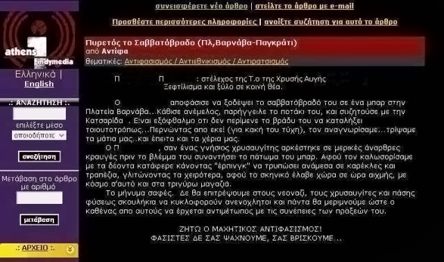 Όπως αποκάλυψε και η ιστοσελίδα των παρακρατικών, indymedia ομάδα αναρχικών στοχοποίησε και παρακολούθησε υπάλληλο της Χρυσής Αυγής στο Παγκράτι.