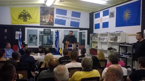 Με μαζική συμμετοχή συναγωνιστών πραγματοποιήθηκε το Σάββατο η εκδήλωση του Λαϊκού Συνδέσμου – Χρυσή Αυγή «Μακεδονία-Γη Ελληνική» στα γραφεία της Τ.Ο. Πέλλας στην Κρύα Βρύση.