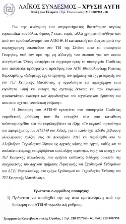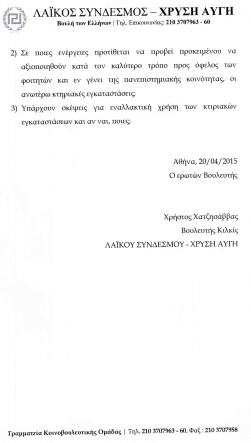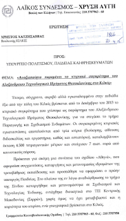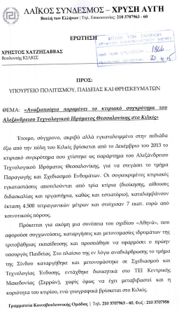 Στις 20-04-2015 (ένα χρόνο πριν δηλαδή)Έγινε ερώτηση από τον βουλευτή μας της ΧΡΥΣΗΣ ΑΥΓΗΣ στο νομό Κιλκίς για το αν θα υπαχθεί σε νομοθετική ρύθμιση η πρόταση του ΑΤΕΙ-Θ για μεταβίβαση της ιδιοκτησίας απο Σέρρες στο Κιλκίς.