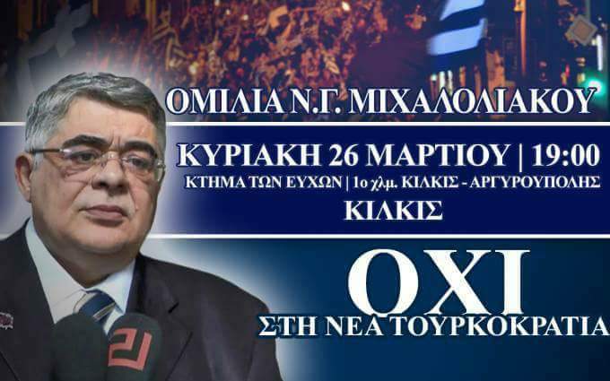 Ο Νικόλαος Γ. Μιχαλολιάκος από το πολύπαθο Κιλκίς θα στείλει το μήνυμα της Εθνικής Αντίστασης: ΟΧΙ στην νέα τουρκοκρατία!