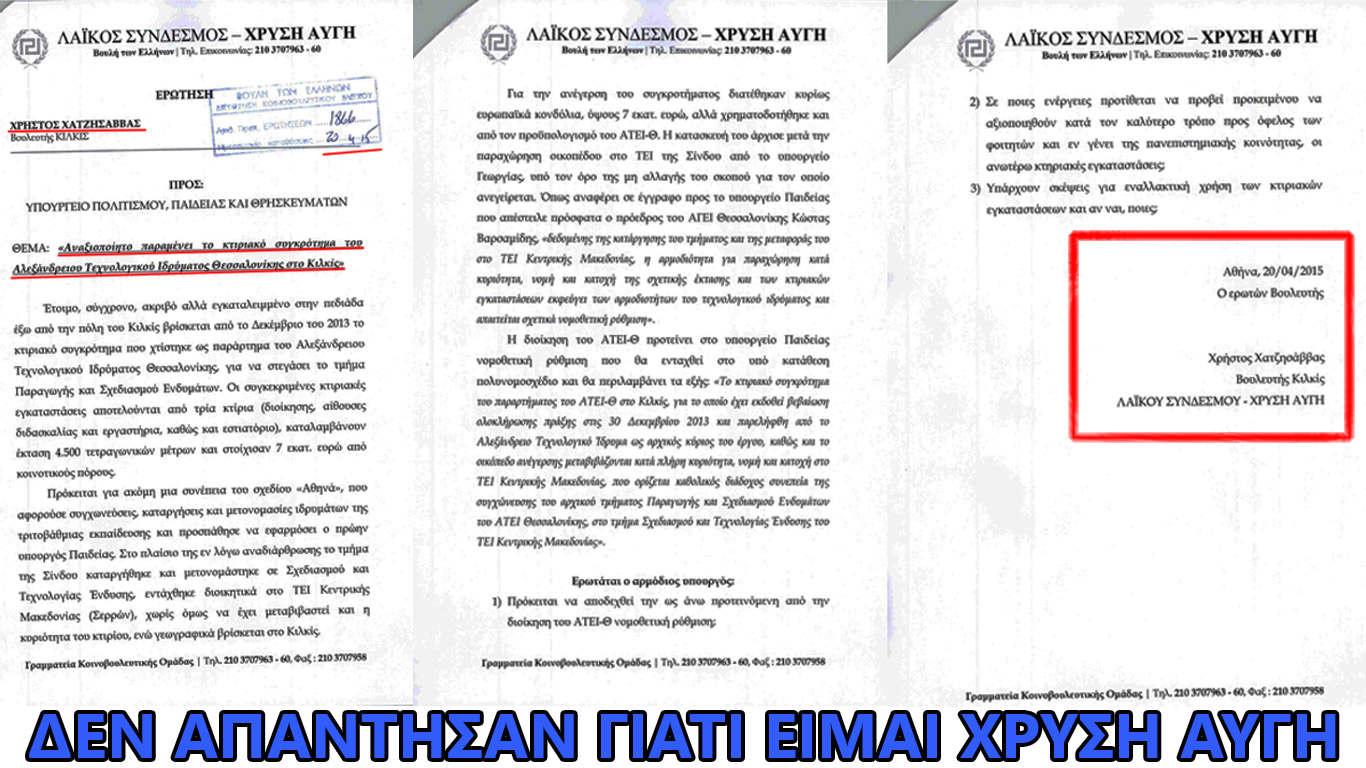 Στην δική μου αντίδραση και ερώτηση σχετικά με το Τ.Ε.Ι του Κιλκίς, η συγκυβέρνηση έμεινε σιωπηλή και δεν απάντησε καν στο ερώτημα μου.