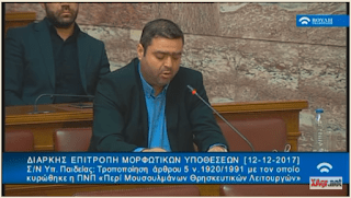 Στην επιτροπή Μορφωτικών Υποθέσεων μίλησε ο Βουλευτής Κιλκίς, Χρήστος Χατζησάββας τονίζοντας προς κάθε κατεύθυνση πως είναι αναγκαίο να καταργηθεί η σαρία στην Ελλάδα και να διορίζονται οι μουφτήδες της κοινότητας των Ελλήνων μουσουλμάνων στην Θράκη από το ελληνικό κράτος.